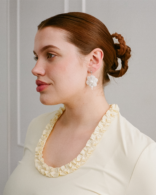 Crochet Pearl Flower Earrings