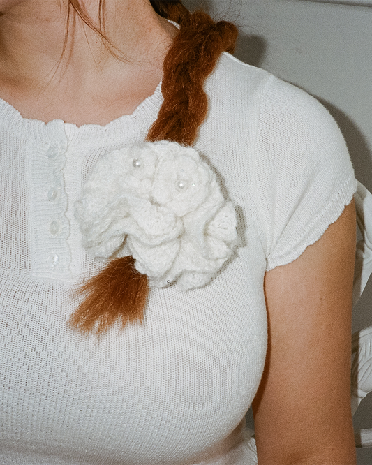 Knit Flower Hair Scrunchie