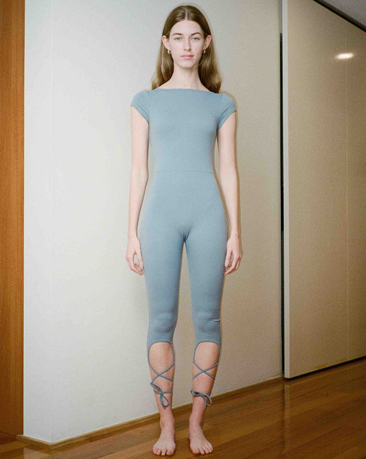 Lace Back Tie Capri Unitard - Blue Haze