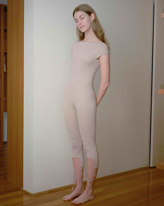 Lace Back Tie Capri Unitard - Rose