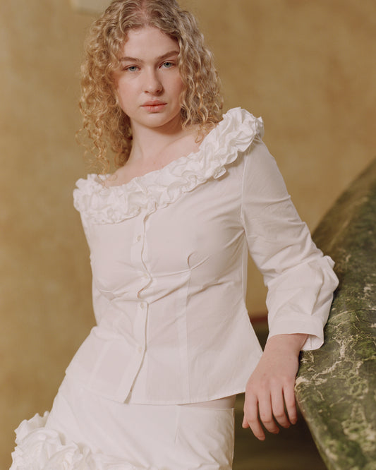 BEST SELLERCurved Collar Cap Sleeve Shirt - White