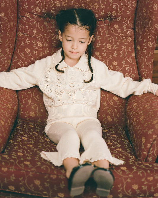 Mini Buttoned Lace Knit Pullover - Porcelain