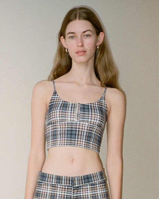 Recycled Poly Button Cami - Early Tide Plaid