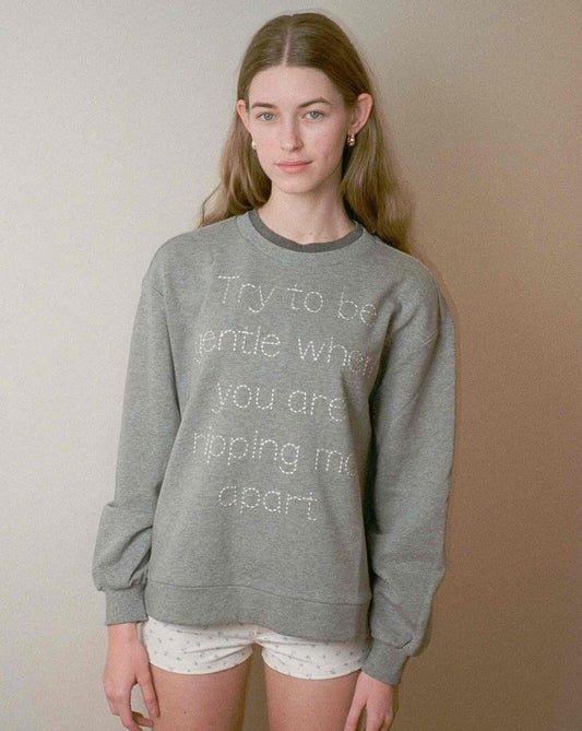 Gentle Embroidery Double Crew Neck Sweatshirt