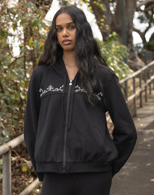 Flora Vine Embroidery Zip-up Hoodie