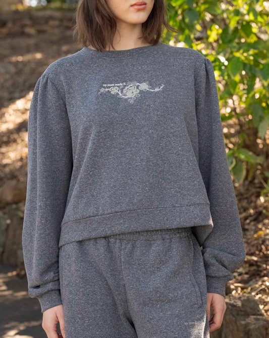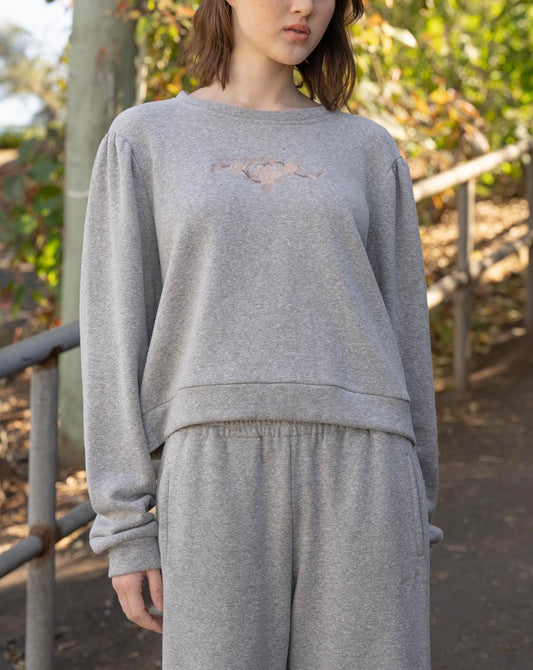 Rosette Fleece Logo Crewneck - Grey