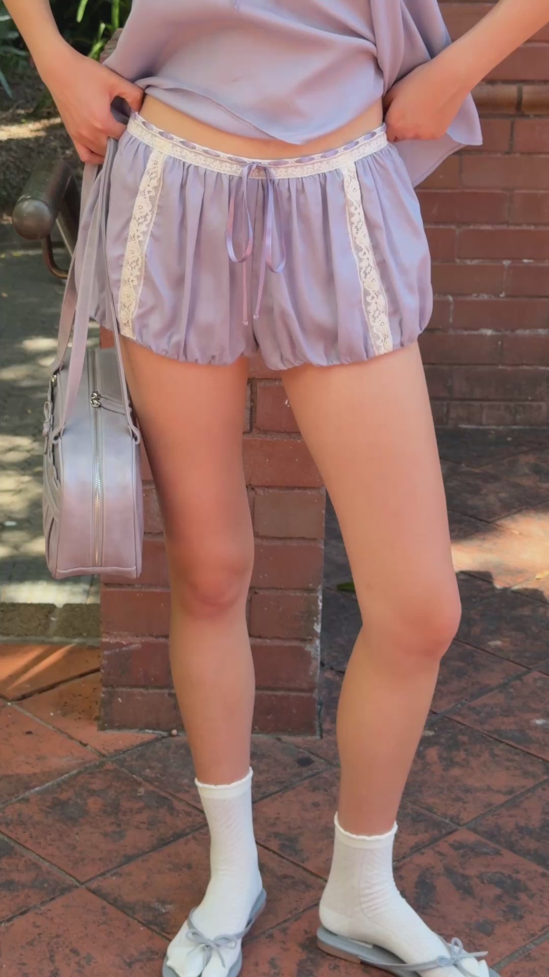 Lace Ribbon Shorts - Wisteria