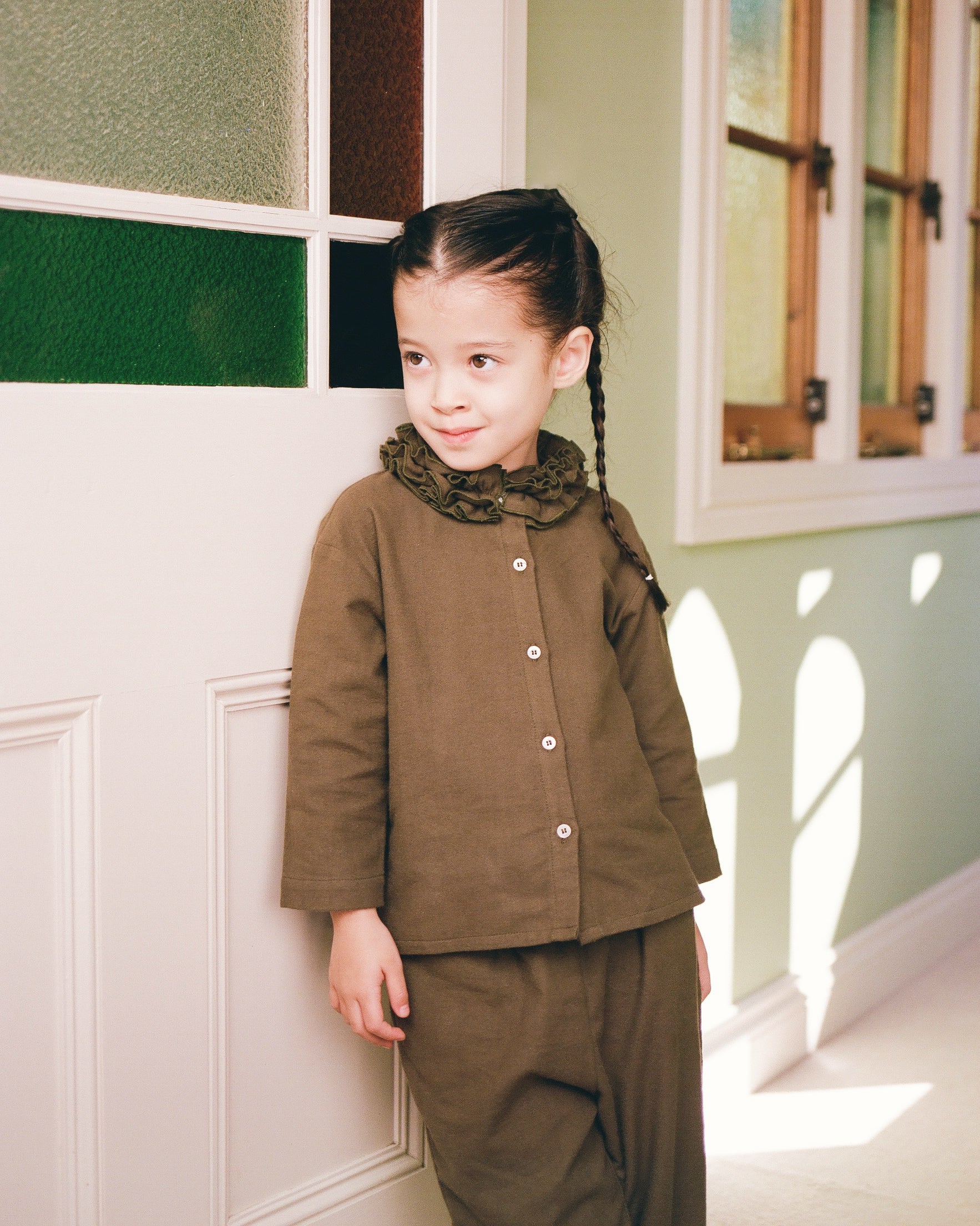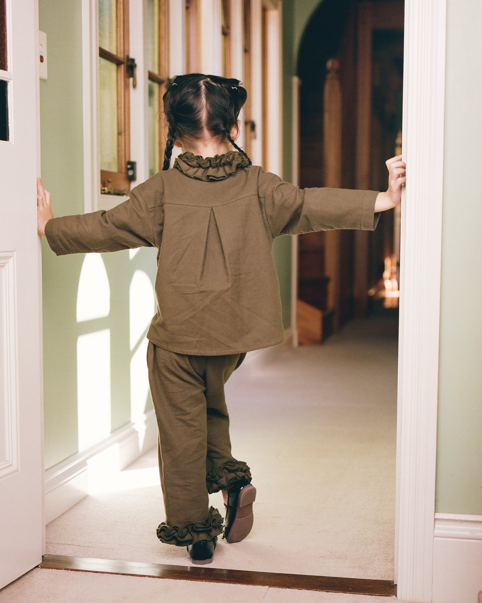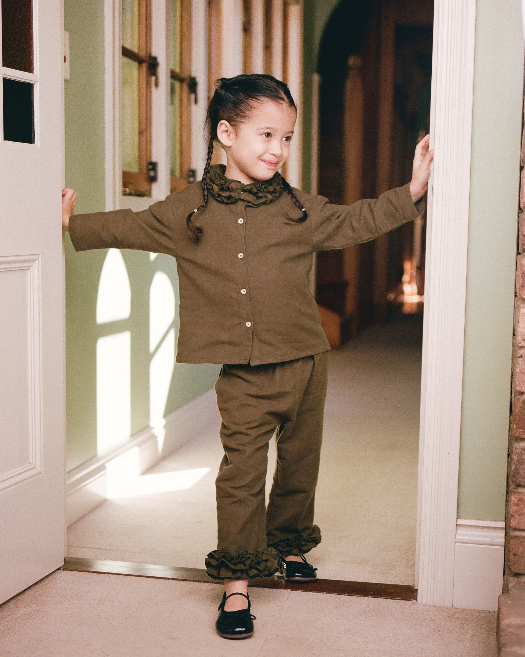 Mini Flannel Ruffle Blouse - Eucalyptus