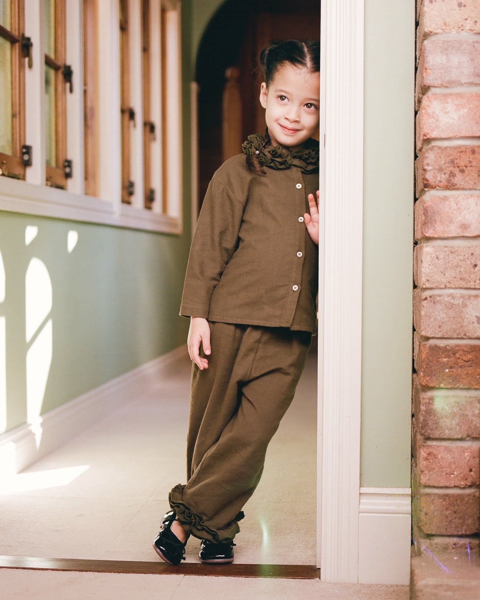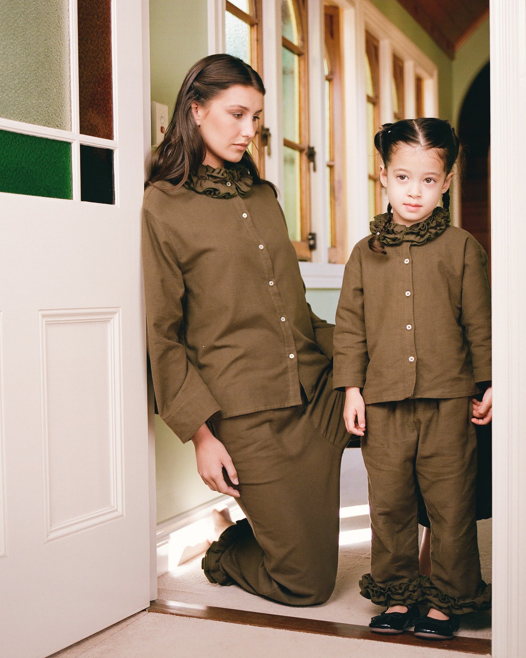 Mini Flannel Ruffle Blouse - Eucalyptus