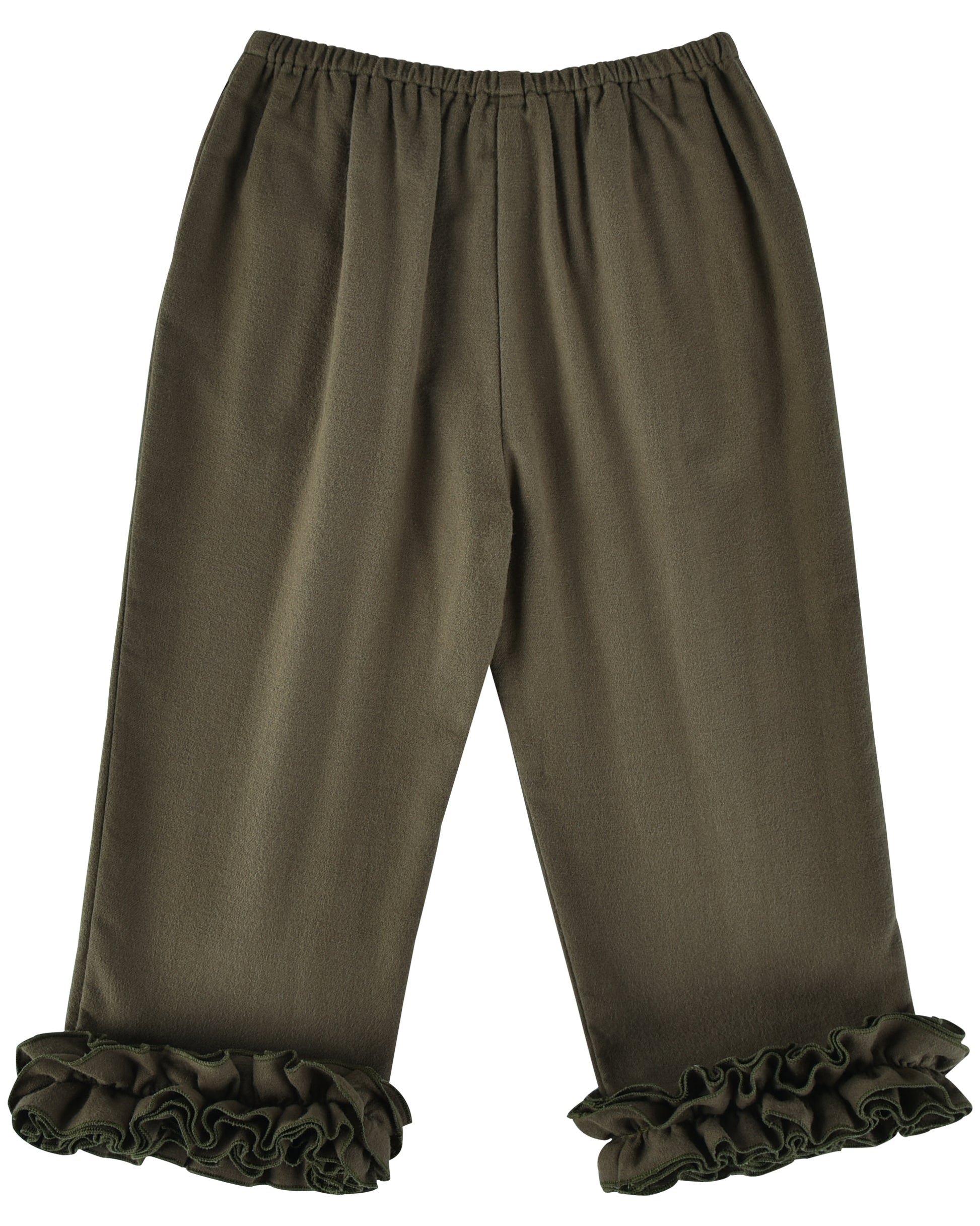 Relaxed flannel ruffle pants. Elasticated waistband for effortless wear, with double-layer ruffle trim at the hem.
