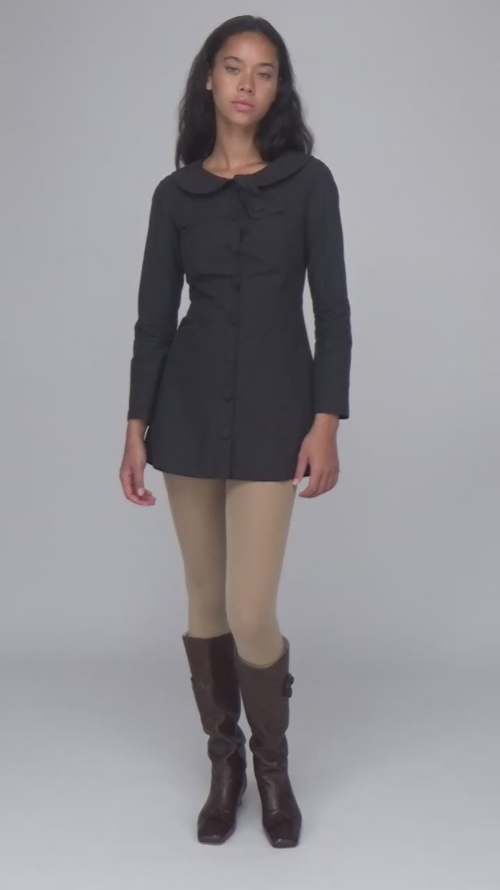 Structured mini dress with an oversized Peter Pan twist collar.