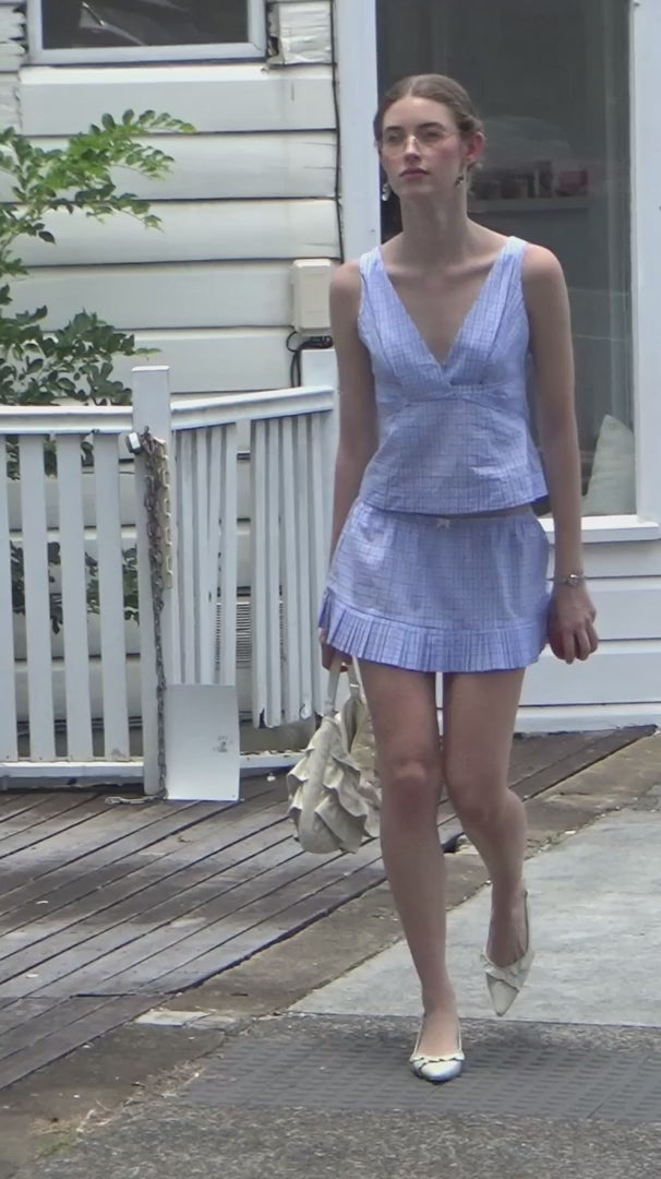 Pleat Mini Skirt - Sky Blue Check