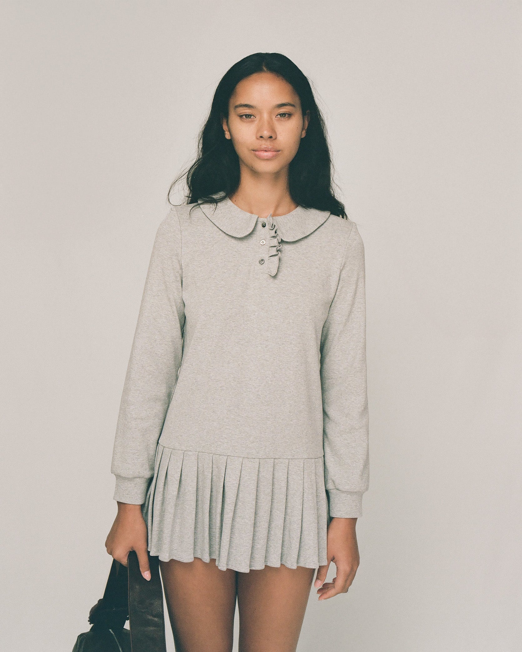 Polo Mini Long Sleeve Pleat Dress - Grey