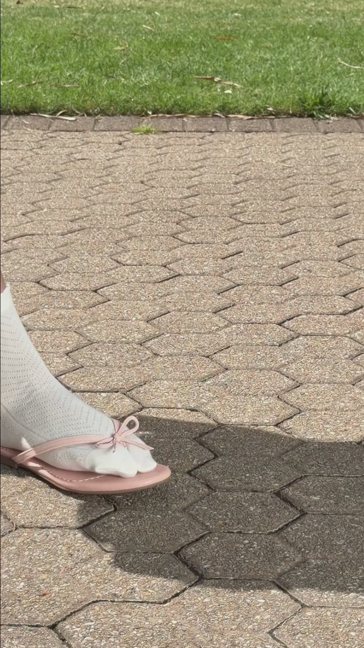 Thong-style sandals featuring slim straps, a front bow detail, and a scalloped insole edge. Finished with a flat sole and stitching detail.