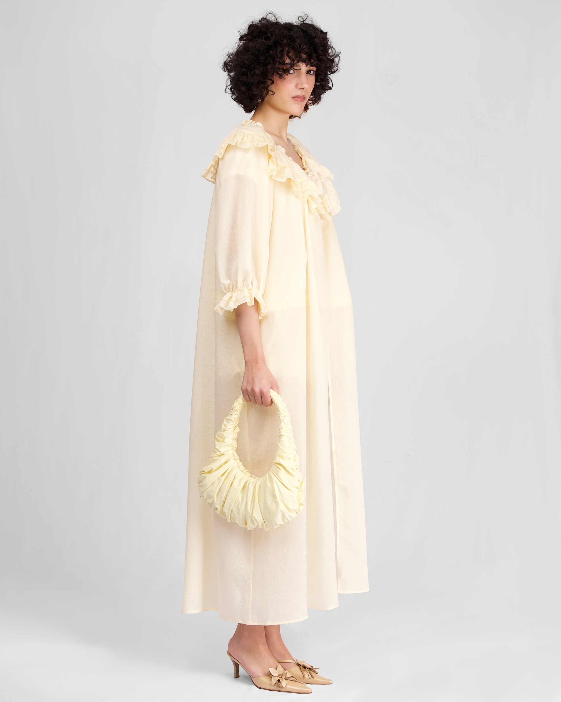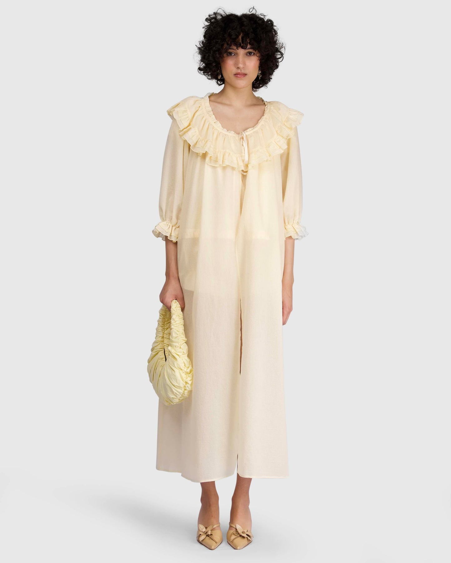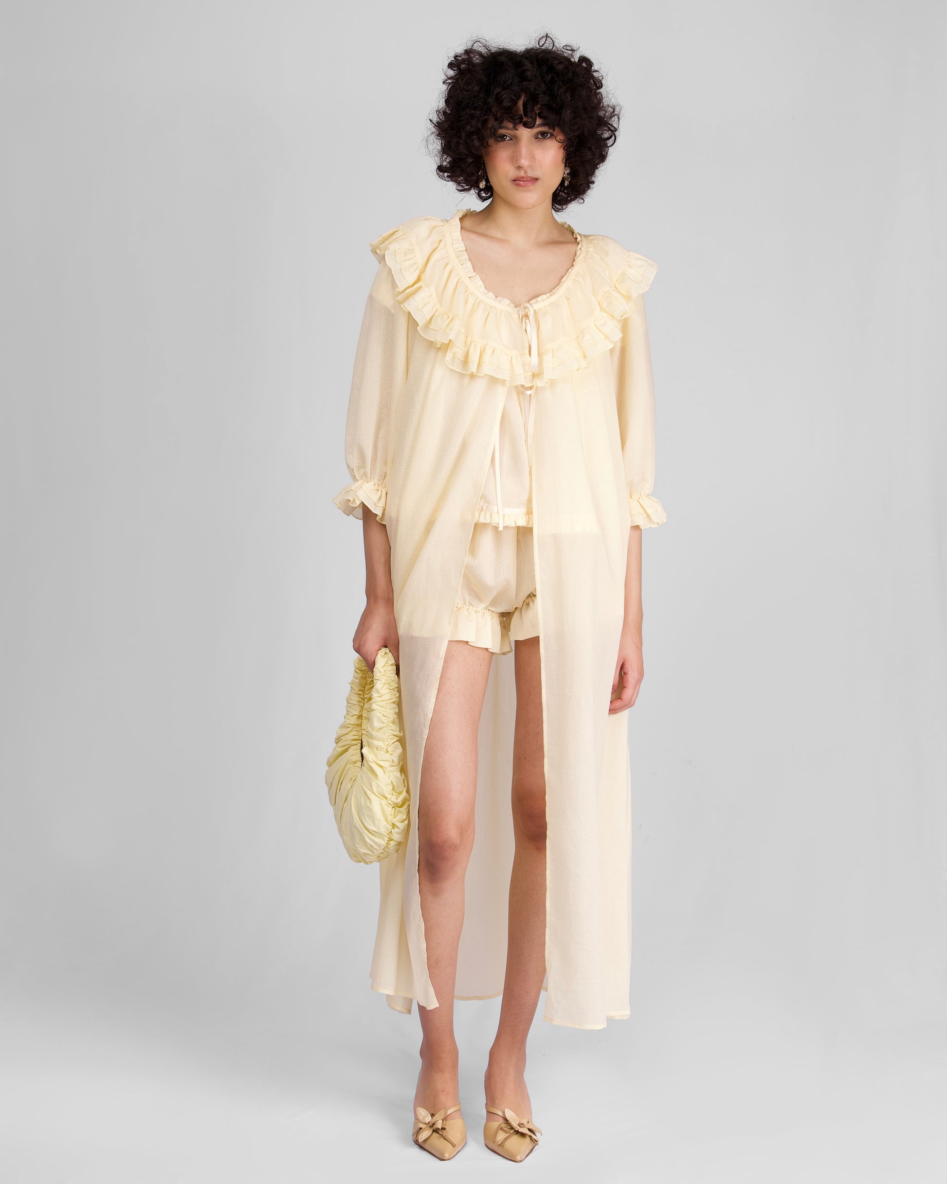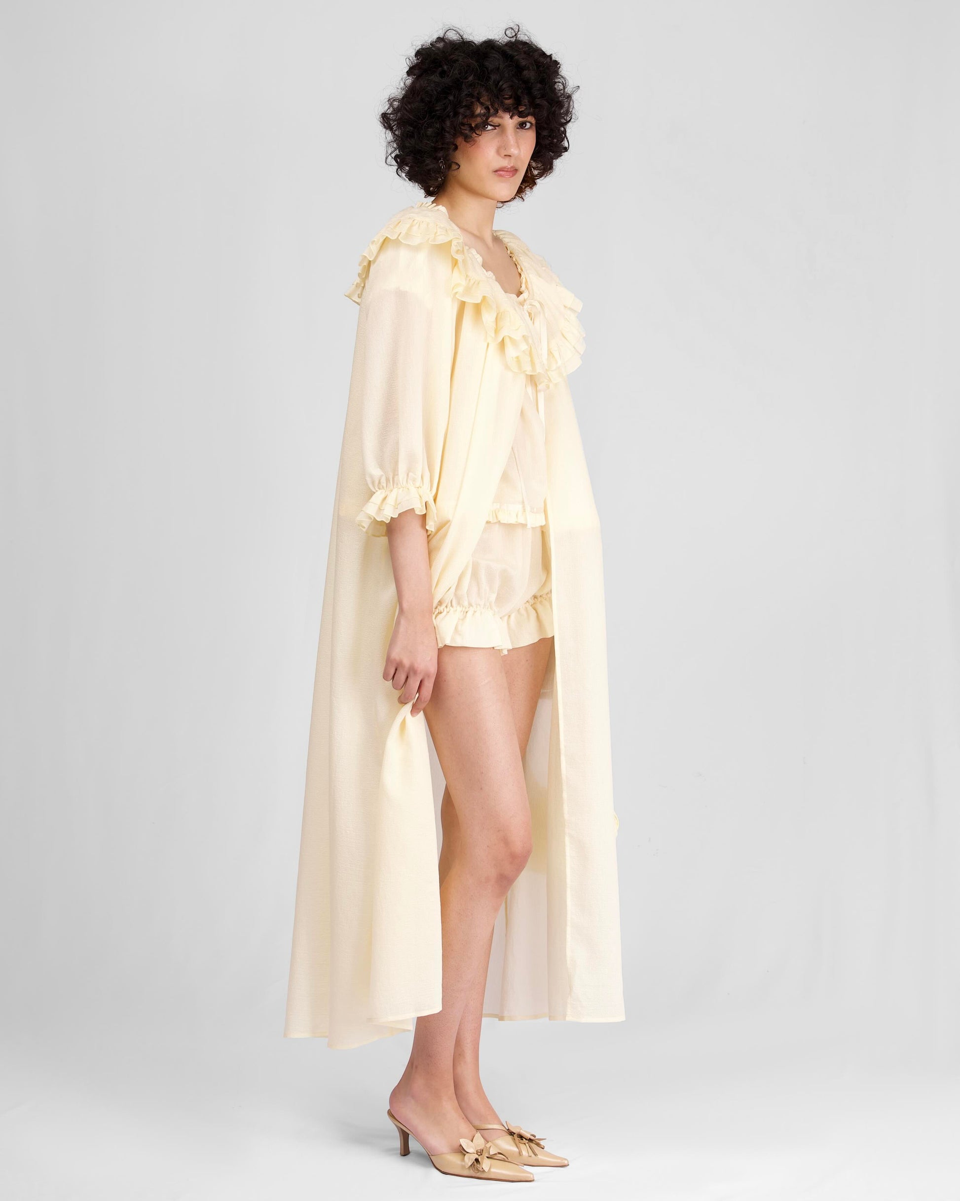 Sheer Half Sleeve Cover-Up Cardigan With Frill Detail Around Sleeve, Hem And Neckline. Tie Closure At Front.